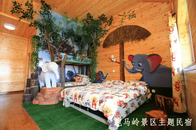 我們獨特的民宿主要分為:森林密境-鸚鵡、野趣天堂-猴子、穿越竹林-熊貓、奇幻夢境-大象等四個主題房間,小屋內(nèi)部設(shè)有雙人大床、兒童床、洗手間、空調(diào)等設(shè)施。