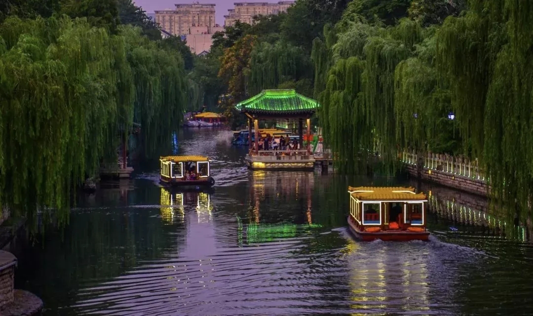 護(hù)城河實(shí)在貪婪,美景如此多還不收手,又把五蓮、白石、九女、琵琶、一虎,大大小小十四處,全攛掇起來。說護(hù)城河是老濟(jì)南花環(huán),一點(diǎn)也不為過,處處飛珠濺玉,水花怒放。夜船啟航的地方,是護(hù)城河最精華段落,夜色尤其動(dòng)人,只要踏進(jìn)一腳再不想出來。船是畫舫,內(nèi)有精致桌椅,航行間可聊天品茗,慢嘗可口點(diǎn)心,水果。若善酒,還可點(diǎn)船宴,體驗(yàn)把酒暢游。