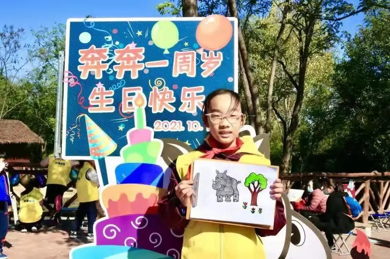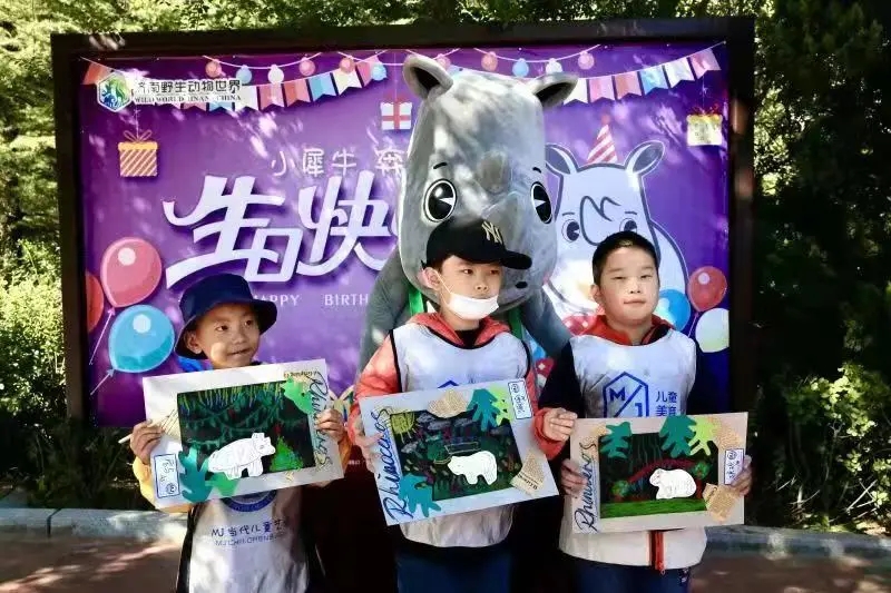 濟(jì)南野生動物世界特地準(zhǔn)備了溫馨生日會,除慕名前來參與奔奔生日Party的粉絲之外,濟(jì)南野生動物世界還特別邀請了40名小朋友為奔奔在犀牛館繪畫,在指導(dǎo)老師呼吁保護(hù)野生動物及介紹雙角白犀牛的體貌特點(diǎn)后,小朋友們迫不及待的拿出手中的畫筆為小犀牛“奔奔”繪畫成長歷程,在繪畫結(jié)束后指導(dǎo)老師與小朋友一同為小犀牛“奔奔”送去祝福。為了表達(dá)感謝,現(xiàn)場身穿“奔奔”玩偶的工作人員為送祝福的小朋友們送去“奔奔”定制禮品盲盒,小朋友更是愛不釋手,喜歡的不得了。