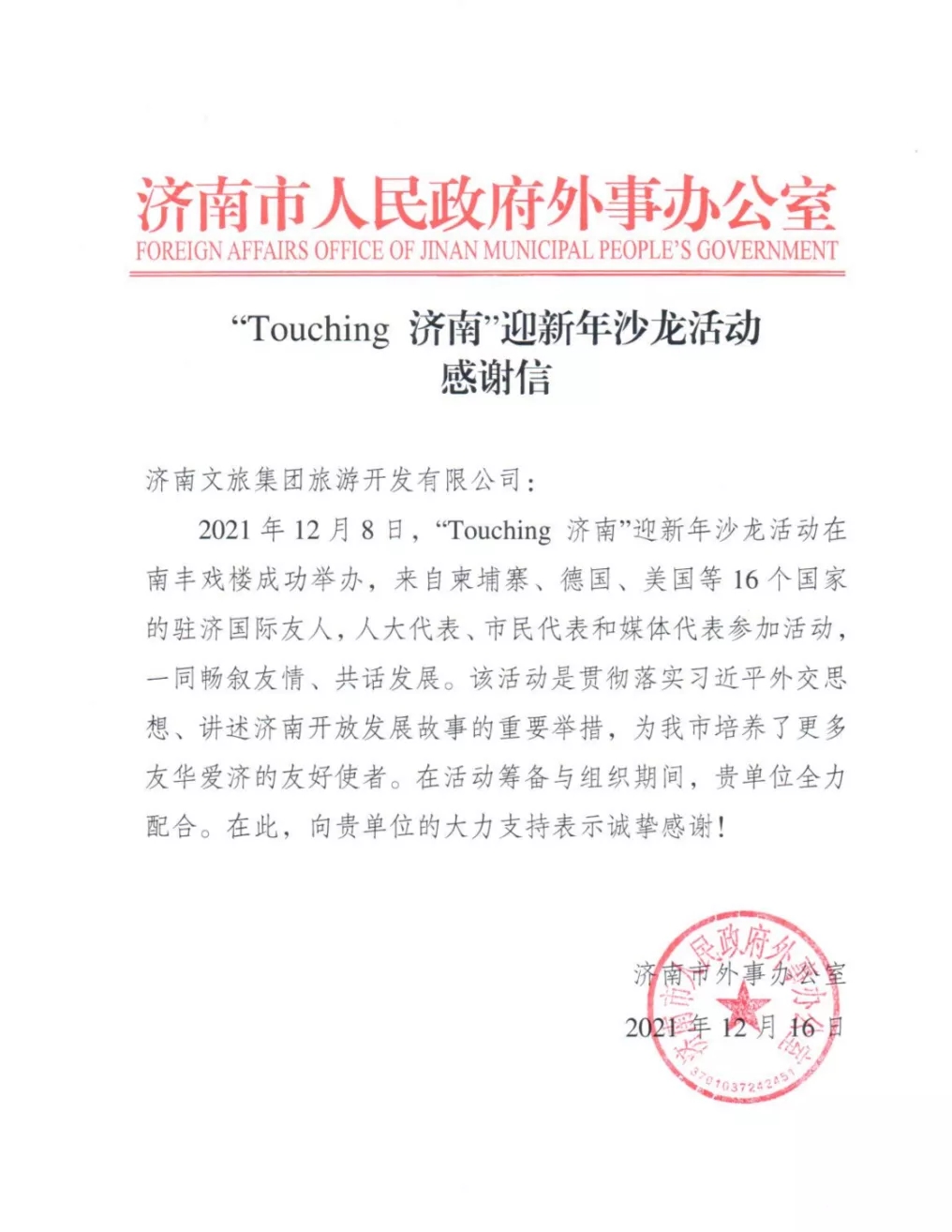 16日,活動圓滿結束后,旅游開發(fā)公司獲得了市外事辦公室的感謝與肯定。