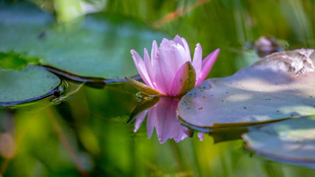 “一池睡蓮始盛開,千嬌百媚入畫來”