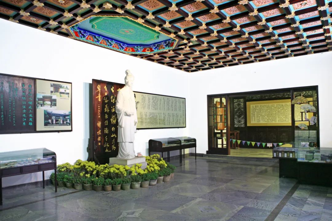 紀念堂正廳,迎門立有李清照全身塑像。正廳里陳列著李清照生平事跡介紹,墻上掛著臧克家、歐陽中石、馮沅君、唐圭璋、舒同、賀敬之等許多當代名家的題詠字畫。