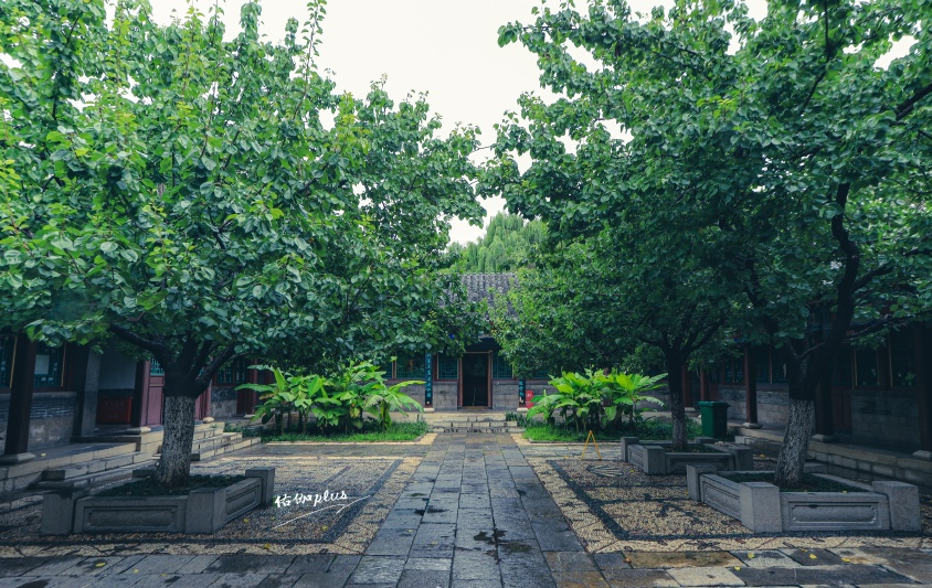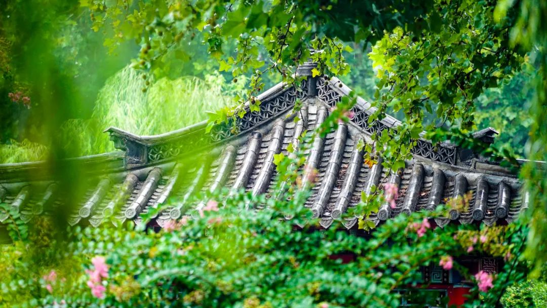 青磚黑瓦,綠葉紅花