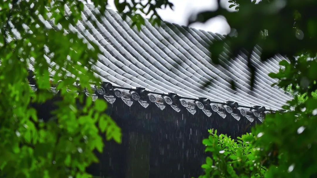 雨滴敲打著瓦檐