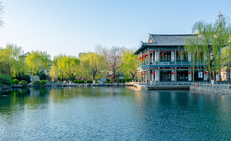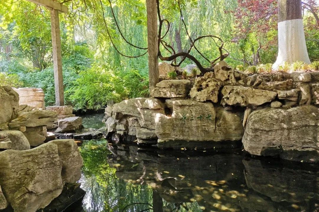 五龍?zhí)端鎸掗?,澄澈如鏡。怪石嶙峋的假山,靜默地守護(hù)著一汪汪清泉。這里有潭、池、溪、港構(gòu)成的秀美景觀,也有秦瓊忠肝義膽的故事傳說,所有的一切,都讓五龍?zhí)段裏o數(shù)游人來此,或聽泉賞魚,或游覽古跡舊址,在燦爛的花樹間流連忘返。這些關(guān)于五龍?zhí)兜拿孛苣阒蓝嗌伲?/p>