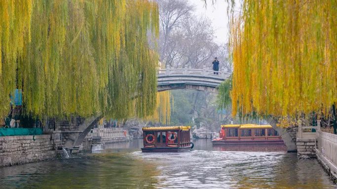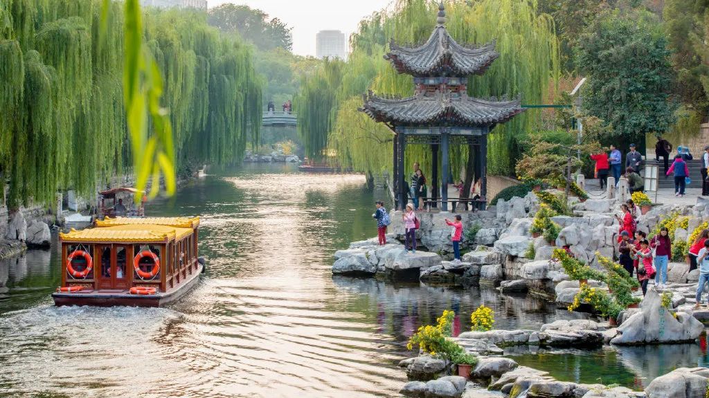 品味濟(jì)南護(hù)城河的美,最妙的便是乘坐畫舫游船,聽潺潺泉韻,賞一水秋色。