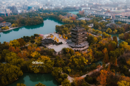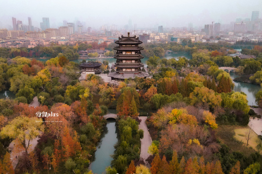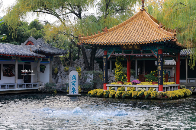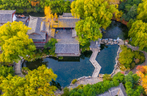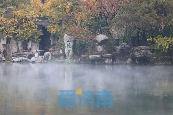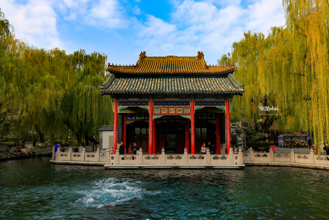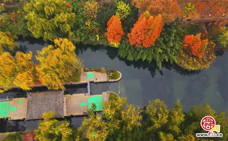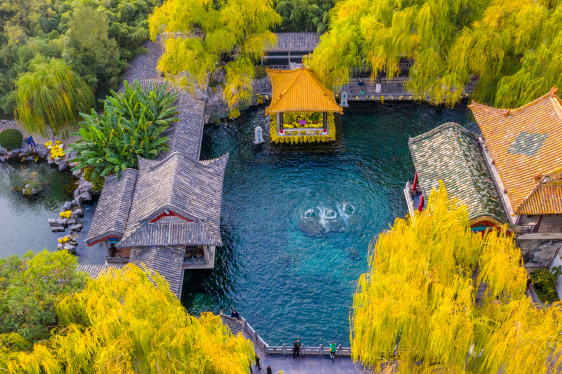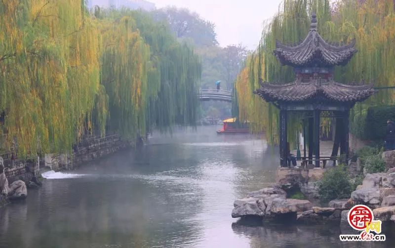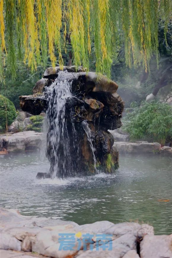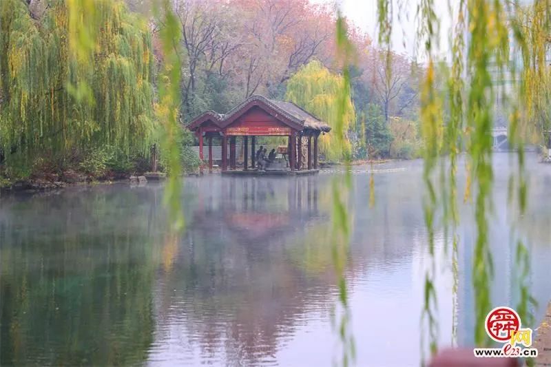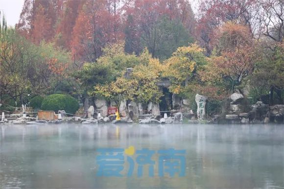趵突泉景區(qū)依舊滿眼翠綠間雜金紅