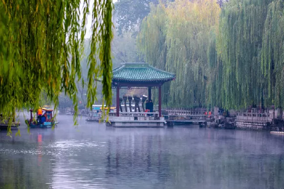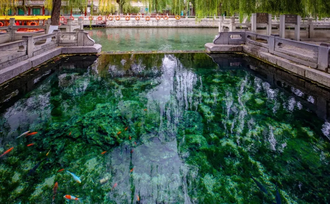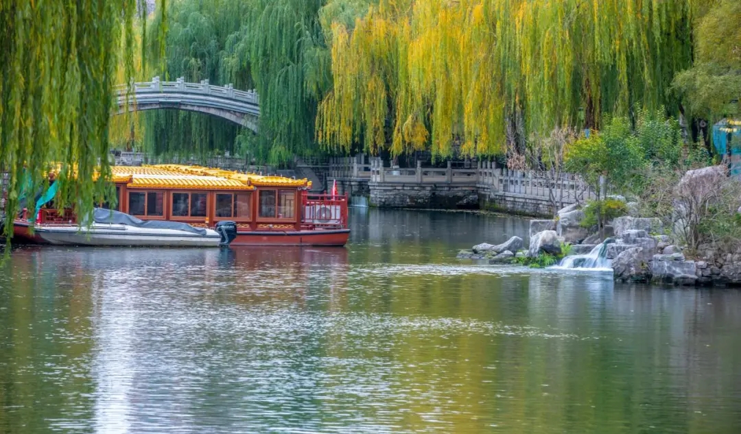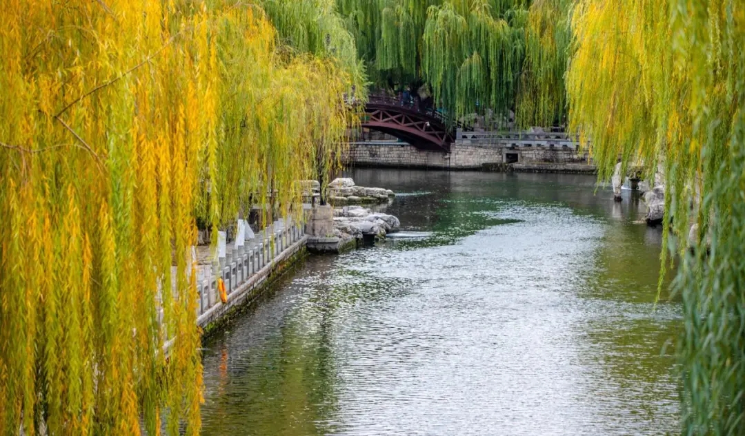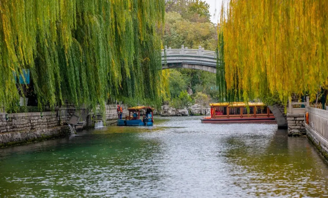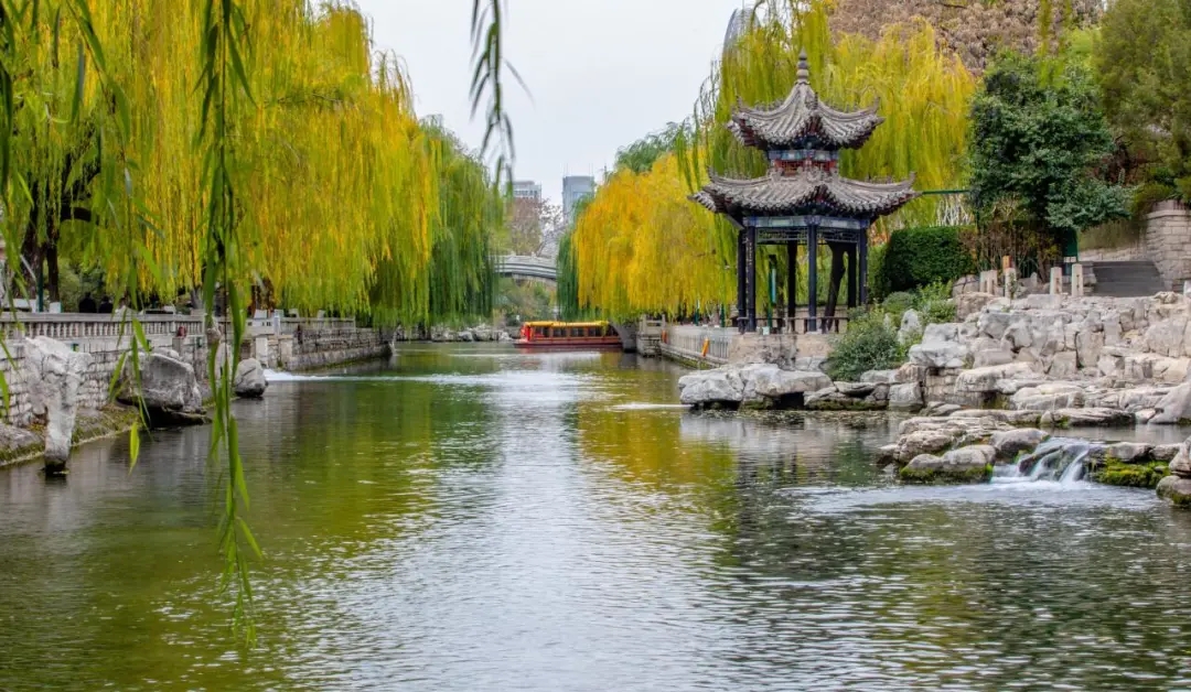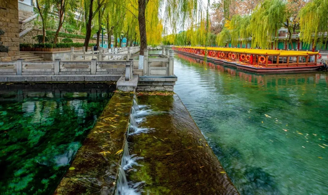 濟(jì)南護(hù)城河全長(zhǎng)6.9公里,是國(guó)內(nèi)唯一河水全部由泉水匯流而成的護(hù)城河,一河連百景,河兩岸垂柳隨風(fēng)搖曳、群泉競(jìng)涌。冬日里的護(hù)城河,真正賞景好去處。