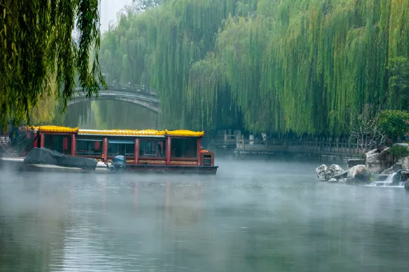 漫步泉池岸邊,聽潺潺泉水作響,觀賞畫舫穿梭于水面之上,如畫兒一般的景象美得讓人沉醉其中。