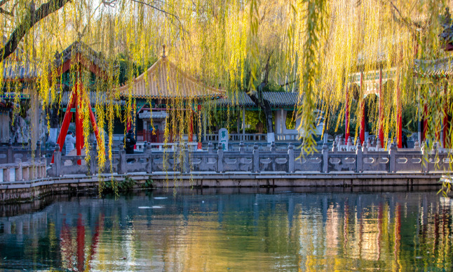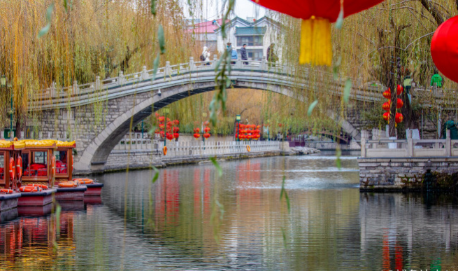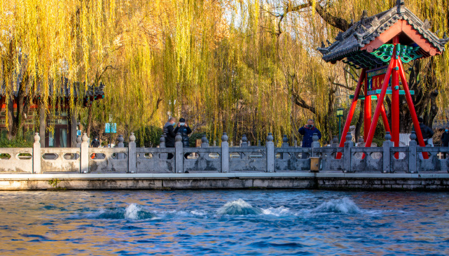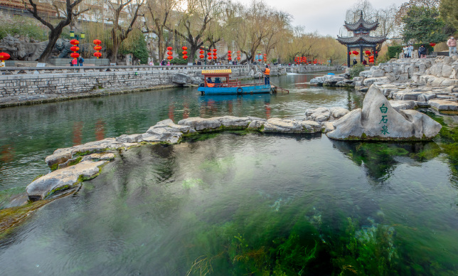 而漫步在護(hù)城河畔,聽潺潺泉水作響,琵琶泉泉聲淙淙如琵琶揚(yáng)韻、五蓮泉水泡成簇盛于水面、白石泉點(diǎn)點(diǎn)白石潺潺碧水、瑪瑙泉如寶石般光彩奪目……觀賞畫舫穿梭于水面之上,如畫兒一般的景象美得讓人沉醉其中。