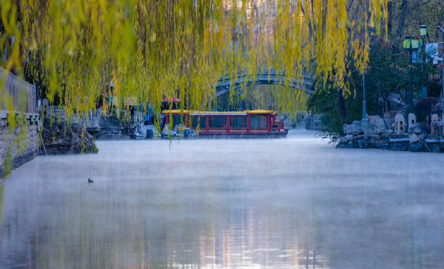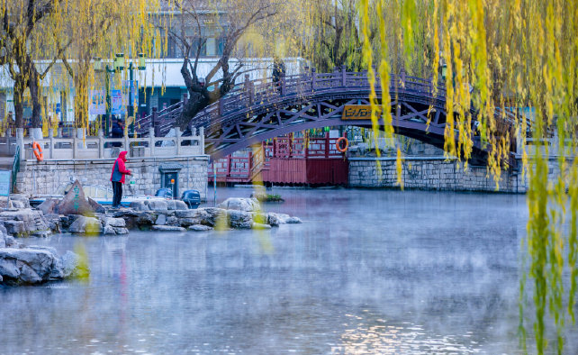 雖沒(méi)有期盼中的大雪紛飛與銀裝素裹,此時(shí)卻另有一番風(fēng)情,裊裊晨霧、水汽蒸騰,這是屬于濟(jì)南冬天的獨(dú)特景致。