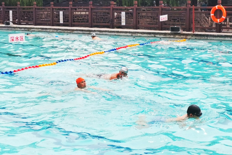 護(hù)城河畔的泉水浴場(chǎng),成了不少冬泳愛好者最愛去的地方,“嗖”的一下快速入水,一波接一波,暢快極了!