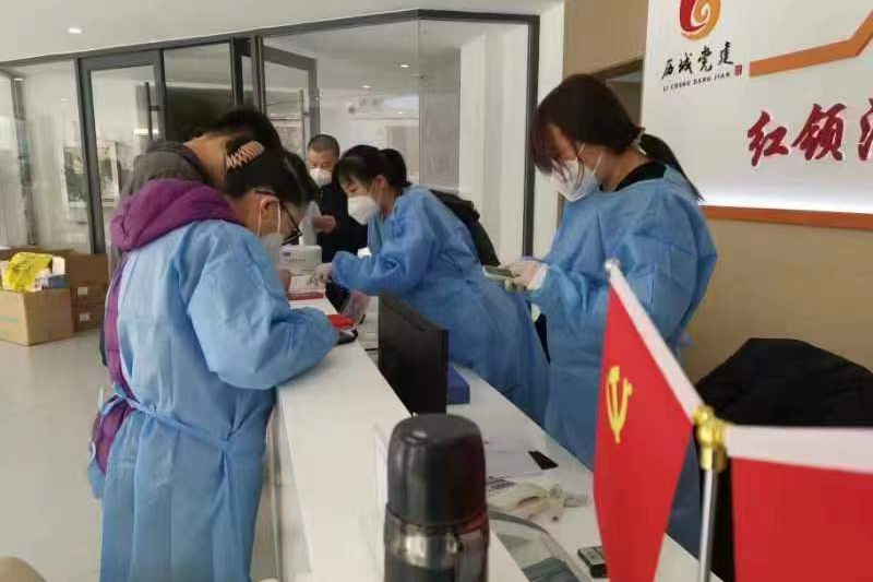 文旅控股下沉煙廠社區(qū),根據(jù)社區(qū)安排,分別負(fù)責(zé)核酸掃碼登記、門口登記值守、熱線接聽工作。
