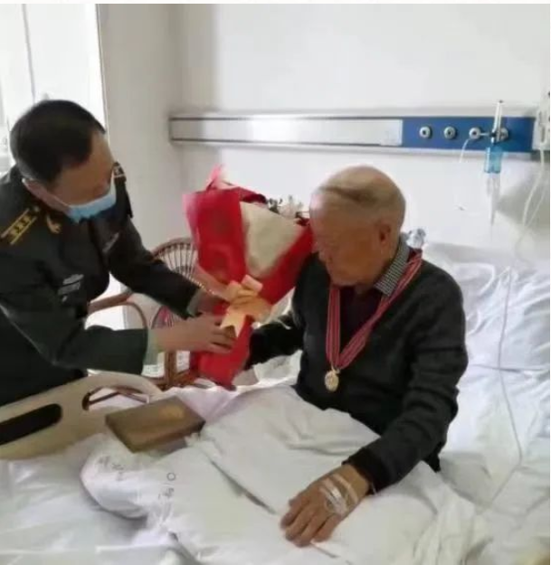 2020年10月25日是中國(guó)人民志愿軍抗美援朝出國(guó)作戰(zhàn)70周年,中共中央、國(guó)務(wù)院、中央軍委向原志愿軍老戰(zhàn)士頒發(fā)“志愿軍抗美援朝出國(guó)作戰(zhàn)70周年”紀(jì)念章。爺爺正在就醫(yī),干休所政委特赴醫(yī)院送去紀(jì)念章和鮮花。
