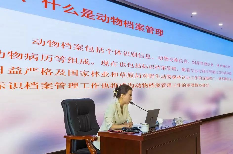 線下培訓(xùn)由濟(jì)南野生動(dòng)物世界副總經(jīng)理李迎擔(dān)任主講師,主要從國(guó)內(nèi)當(dāng)前動(dòng)物檔案管理現(xiàn)狀、開(kāi)展動(dòng)物檔案管理工作的重要性和意義以及動(dòng)物園動(dòng)物檔案建立方法及構(gòu)成等五個(gè)方面進(jìn)行授課。