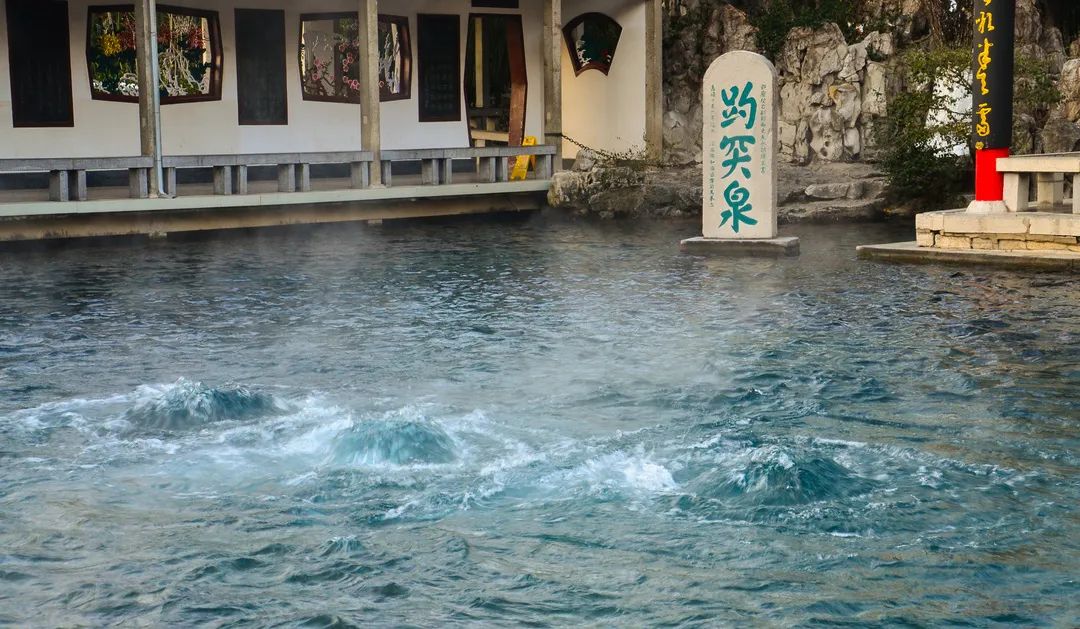 冬季的趵突泉依舊保持高水位,閑坐亭上,聆聽自三窟迸發(fā)而出的泉水叮咚,憑欄細(xì)觀水流的跳躍奔突,甚是有滋味。而園區(qū)的蠟梅正舒展著腰肢,將點(diǎn)點(diǎn)俏麗身影投在紅墻青瓦之上,淡淡幽香于霧氣蒸騰的泉邊飄揚(yáng)。