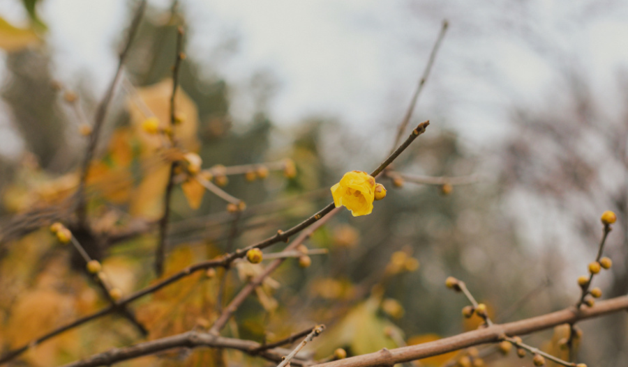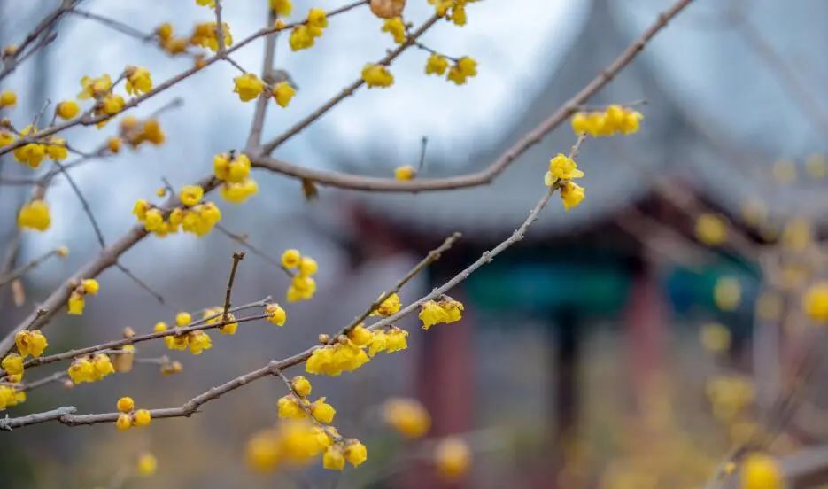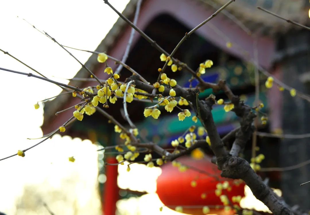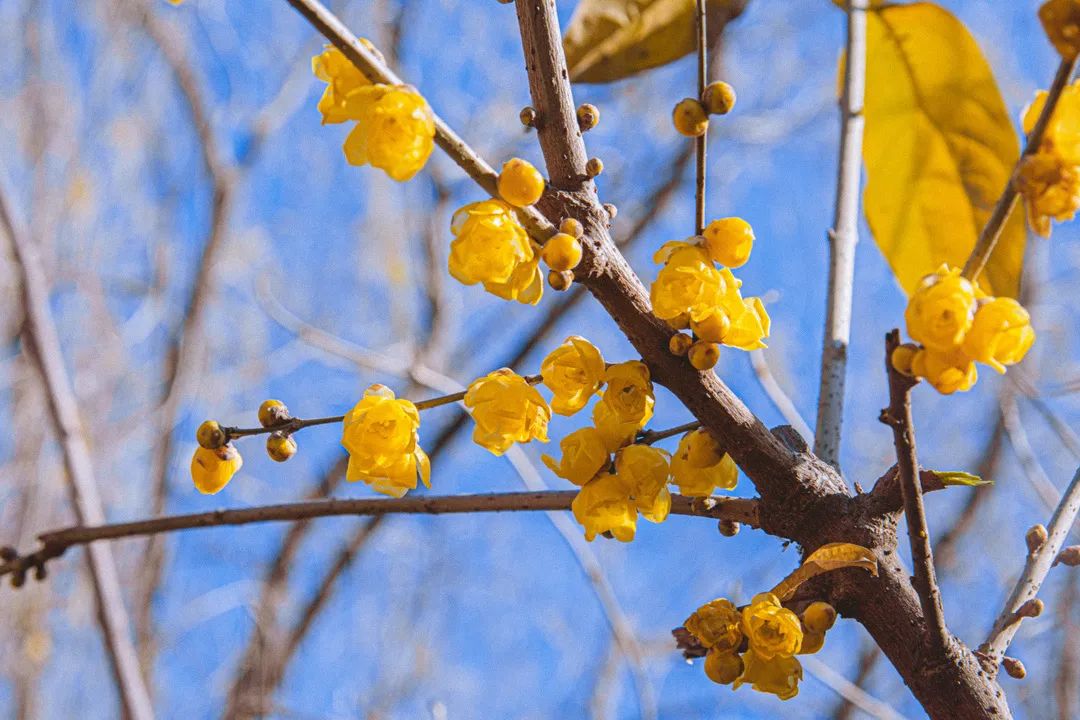 每當(dāng)花開都會(huì)吸引不少攝影師前來拍照,鵝黃色的小花猶如石蠟雕成,嬌嫩的色彩和那特有的暗香給寒冬帶來了一片溫馨。