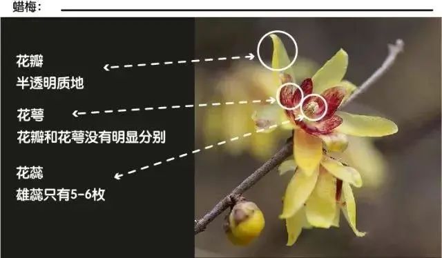 蠟梅為蠟梅科蠟梅屬,而梅花則為薔薇科李屬,兩者既不同科也不同屬,只因兩者都有一個(gè)“梅”字,都是先開花后長葉,又都具有芳香氣,且都為冬春季開花,所以不少人常常誤認(rèn)為是同種。
