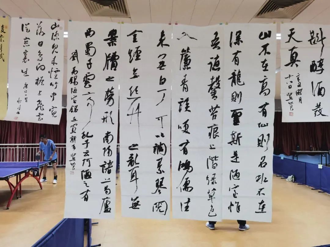 本次活動,奧體中心創(chuàng)新競賽形式、豐富活動載體,將乒乓球比賽與球友書法展示相結(jié)合,比賽場地內(nèi)懸掛了球友們的優(yōu)秀書法作品,賽前球友們進行現(xiàn)場觀看交流,為緊張比賽營造文化氛圍、增添文娛氣息。比賽分為男、女單打兩個組別進行。賽場上,選手們熱身后迅速投入到緊張的比賽中,揮汗如雨,奮勇拼搏,靈活采用削球、扣殺等技術(shù),以飽滿的熱情和高昂的斗志全身心投入比賽,充分發(fā)揚頑強拼搏的體育精神,達到鍛煉身體、放松心情、增進友誼、提高球技的目的。