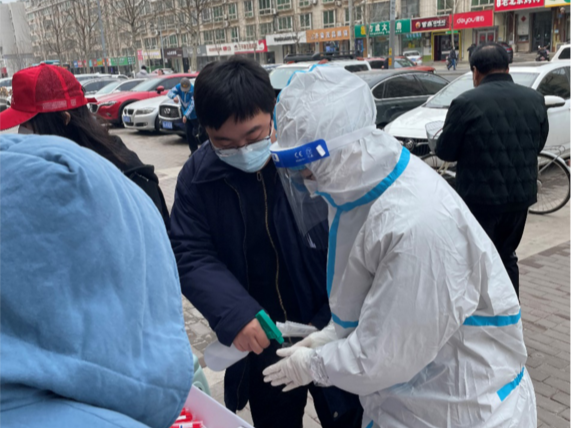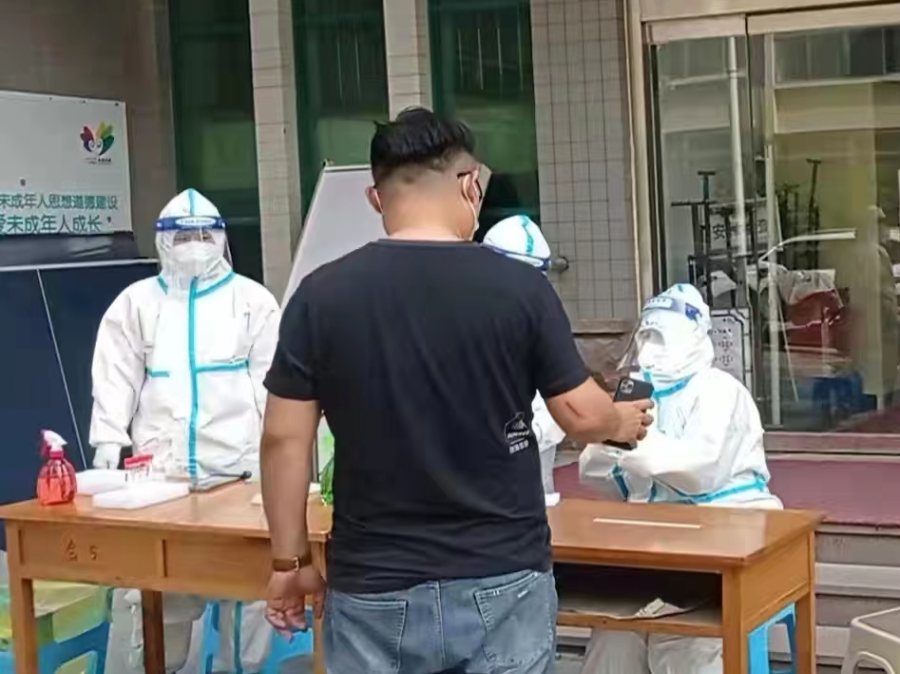 在小區(qū)日常核酸檢測(cè)現(xiàn)場(chǎng),郭子琨一刻不停地配合社區(qū)工作人員進(jìn)行秩序維護(hù),一會(huì)提醒居民注意保持安全距離,一會(huì)又去協(xié)助居民進(jìn)行掃碼登記、幫助醫(yī)護(hù)人員消毒,有效地保障了核酸檢測(cè)工作的有序進(jìn)行。