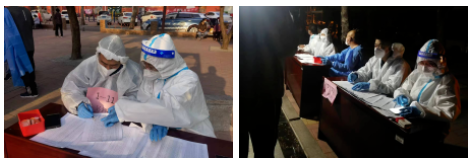 參加疫情防控的黨員干部在社區(qū)的統(tǒng)一調(diào)配下,協(xié)助社區(qū)開展核酸檢測、測溫和監(jiān)督掃碼,積極開展入戶人員排查管理、流調(diào)、數(shù)據(jù)統(tǒng)計、逐戶張貼宣傳單頁等工作。在集中進行核酸檢測期間,從早到晚連續(xù)奮戰(zhàn),積極宣傳疫情防控政策,引導群眾理解并參與疫情防控,用實際行動切實保障了社區(qū)群眾健康安全。
