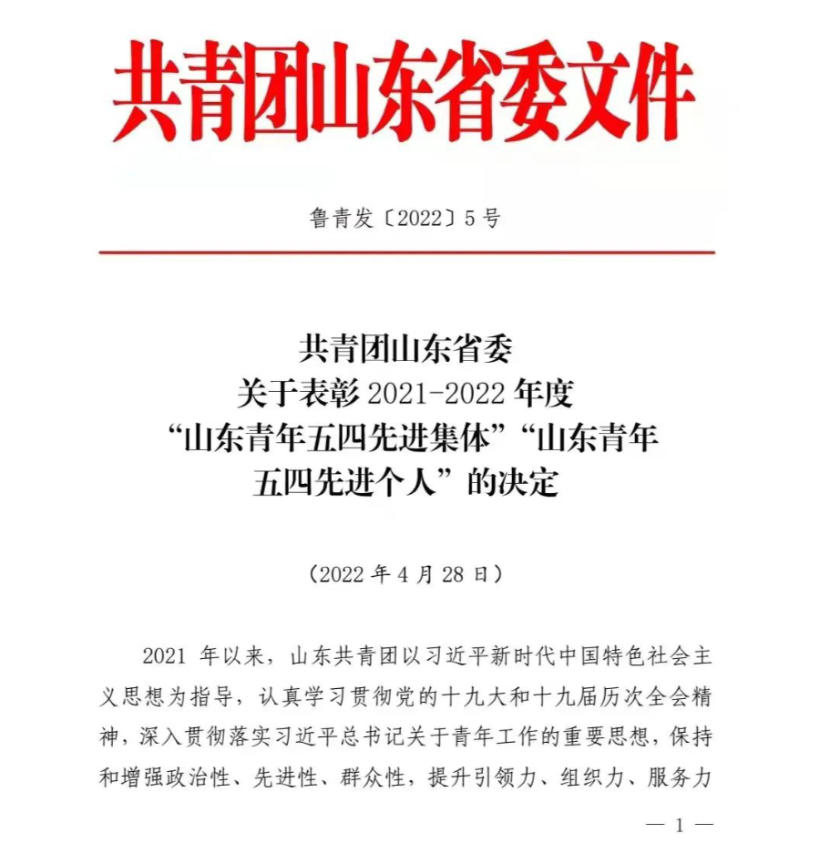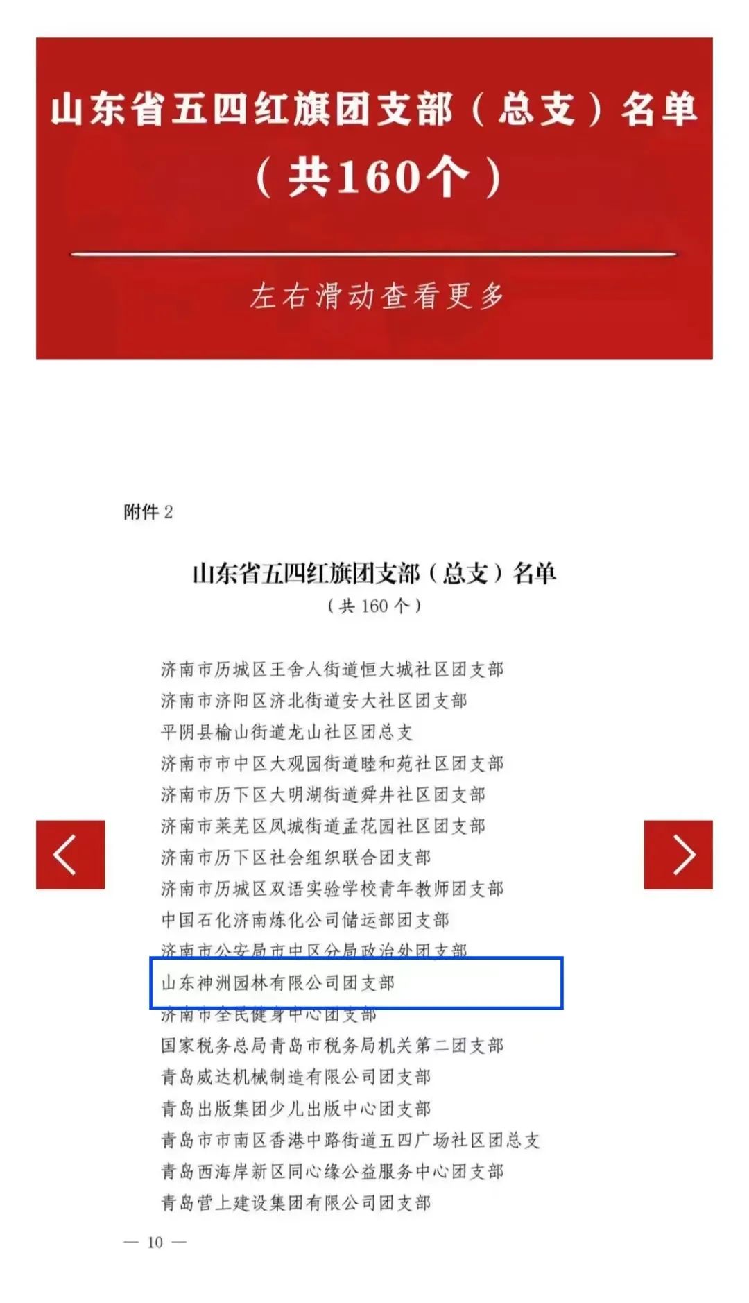 近日,共青團山東省委公布了《關(guān)于表彰2021-2022年度“山東青年五四先進集體”“山東青年五四先進個人”的決定》,山東神洲園林有限公司團支部榮獲“山東省五四紅旗團支部”榮譽稱號。