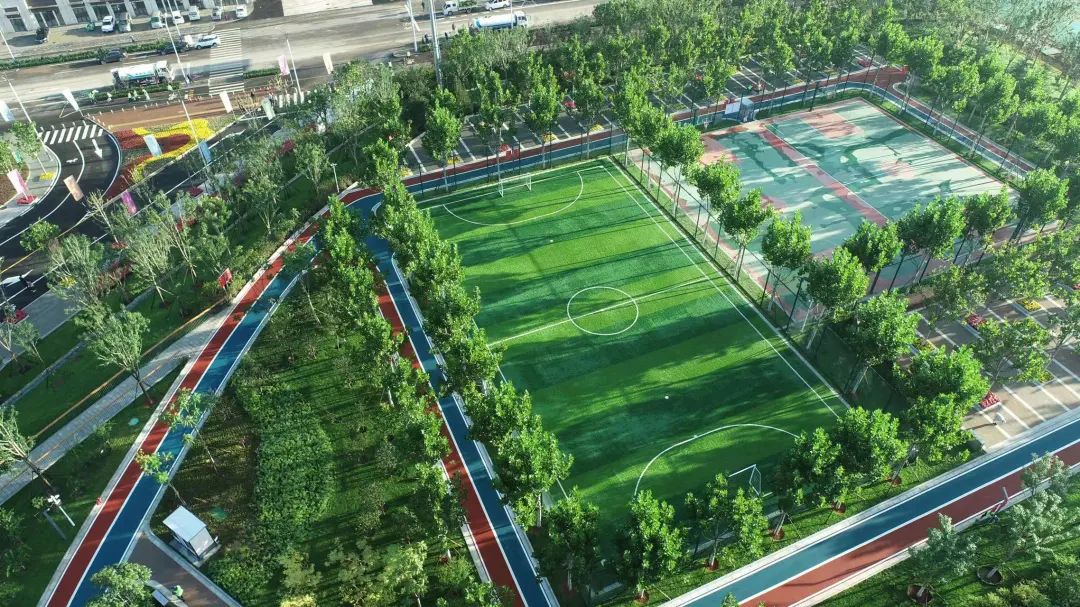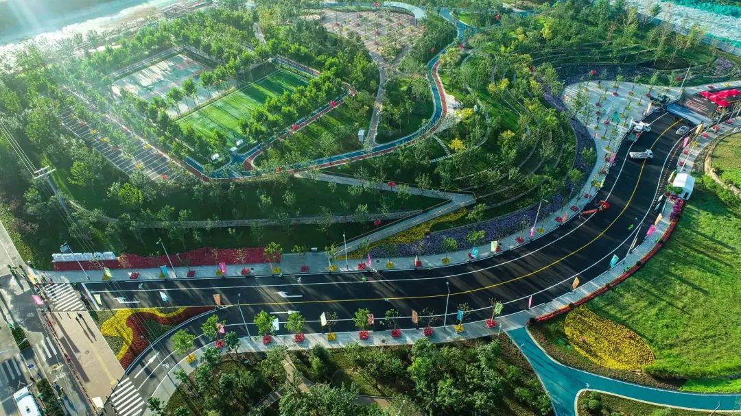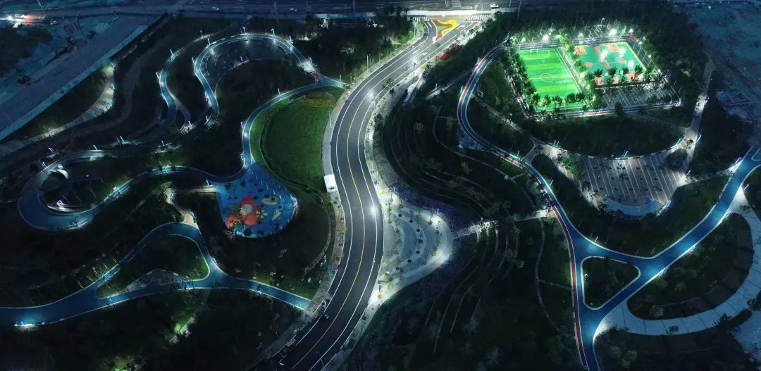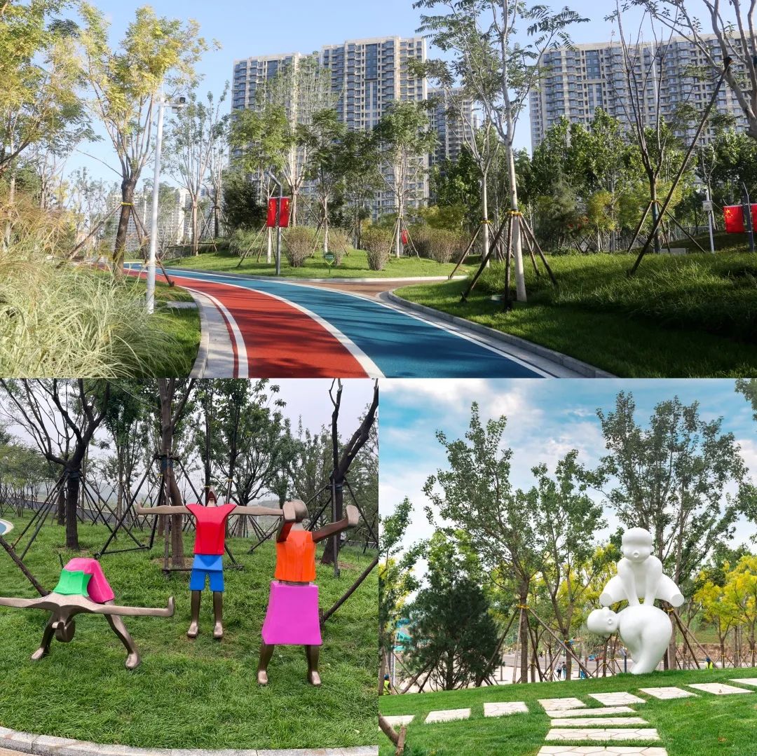 本工程施工之前為一處傾倒20余年渣土的渣土場,建筑渣土無序傾倒形成起伏不定的多個土山、臺地。項目本著節(jié)約、生態(tài)、高效的原則梳理空間、土方內(nèi)部平衡及改良,借勢布置錯落有致的園林臺地景觀,打造立體可識別的景觀符號;公園里植物景觀以本土樹種作為骨架樹和基調(diào)樹,樹種合理搭配并豐富群落季相變化;適當選用新品種花卉和觀賞草類成片種植,營造綴花草坪和觀賞草花境,形成大尺度、小精致的植物景觀特色。同時導入多元的文體娛健活動內(nèi)容,強化全齡、復合的體育、休閑活動于一體的全民共享的空間功能;并在重要景觀節(jié)點位置,布置相應(yīng)的雕塑小品等設(shè)施豐富文化內(nèi)涵,成功打造了泉城南部新城一張靚麗的新名片。