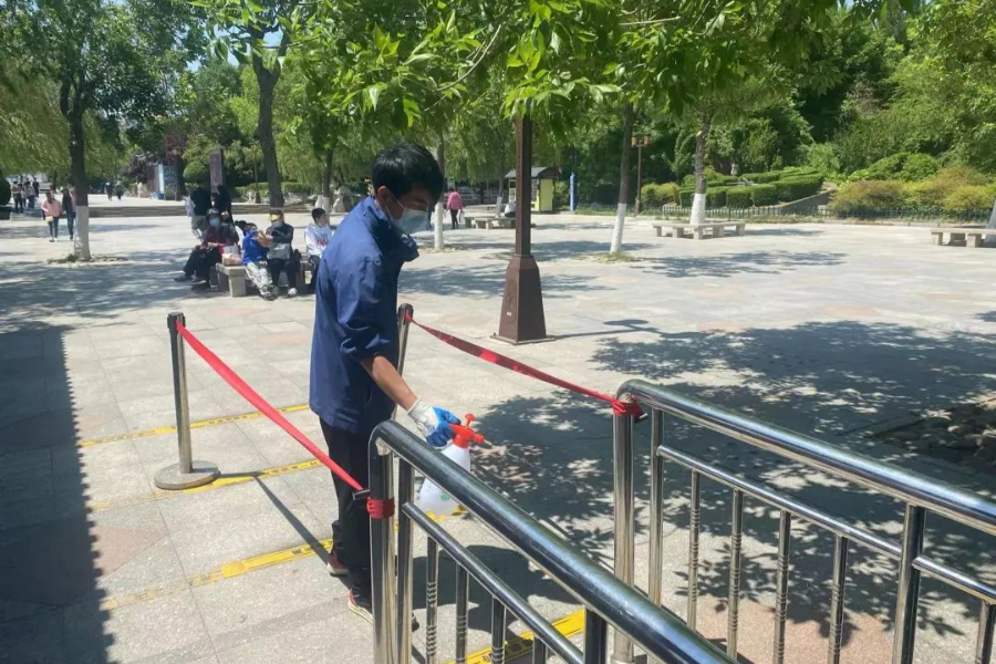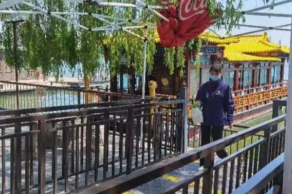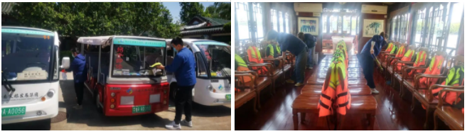 各項(xiàng)目每日定點(diǎn)定時(shí)對工作區(qū)域、公共區(qū)域、設(shè)施設(shè)備進(jìn)行全面消殺;針對售票處等游客密切接觸區(qū)域,采取日均兩次以上噴灑消毒的消殺方式;游船、觀光車等項(xiàng)目設(shè)備做到“一客一用一消”;在游覽入口等重點(diǎn)區(qū)域配備足夠的測溫儀、口罩、消毒劑等防疫物資。