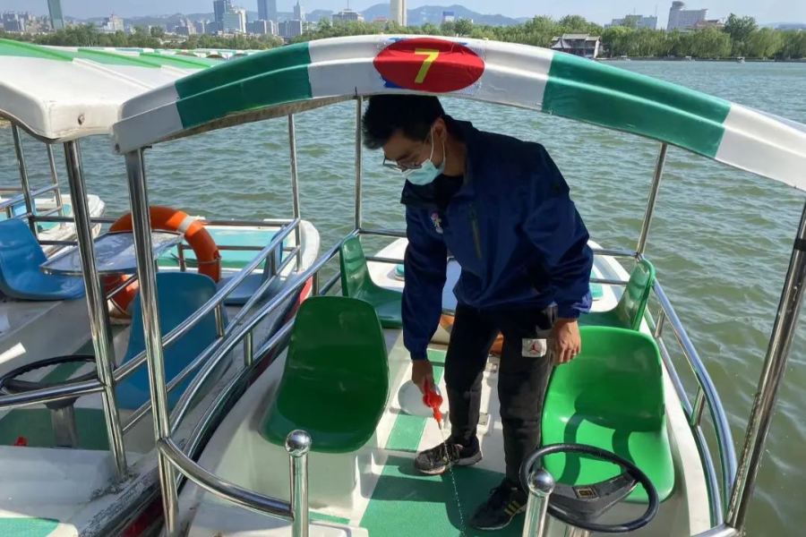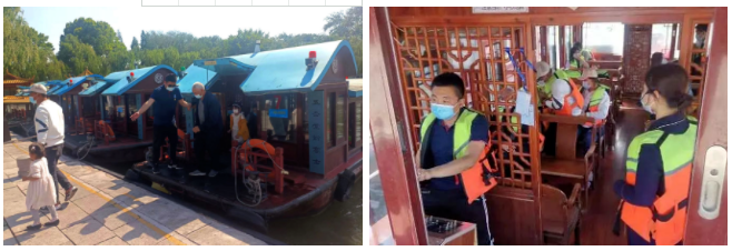 各項(xiàng)目在游客游覽區(qū)域落實(shí)“場所碼”查驗(yàn)、體溫測量、實(shí)名登記等防疫措施,提醒游客保持安全間距、佩戴口罩、有序游覽。游船等熱門項(xiàng)目按照“限量、預(yù)約、錯(cuò)峰”總要求,堅(jiān)持“能約盡約”,采取互聯(lián)網(wǎng)售票、二維碼驗(yàn)票等方式有效減少人員接觸。在船站入口等重點(diǎn)區(qū)域做好游客提前轉(zhuǎn)碼快速入園引導(dǎo)服務(wù),確保市民游客游覽安全。
