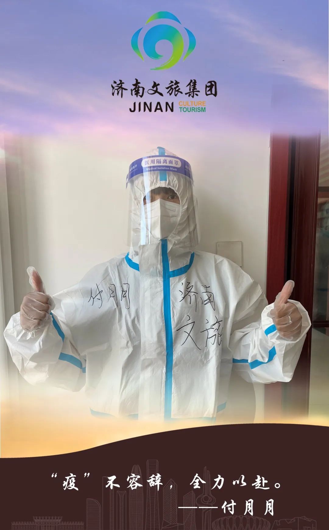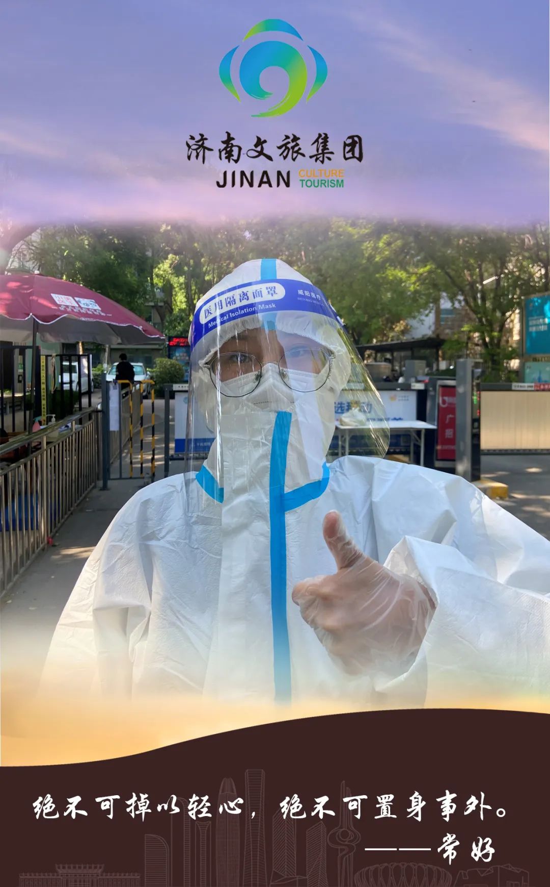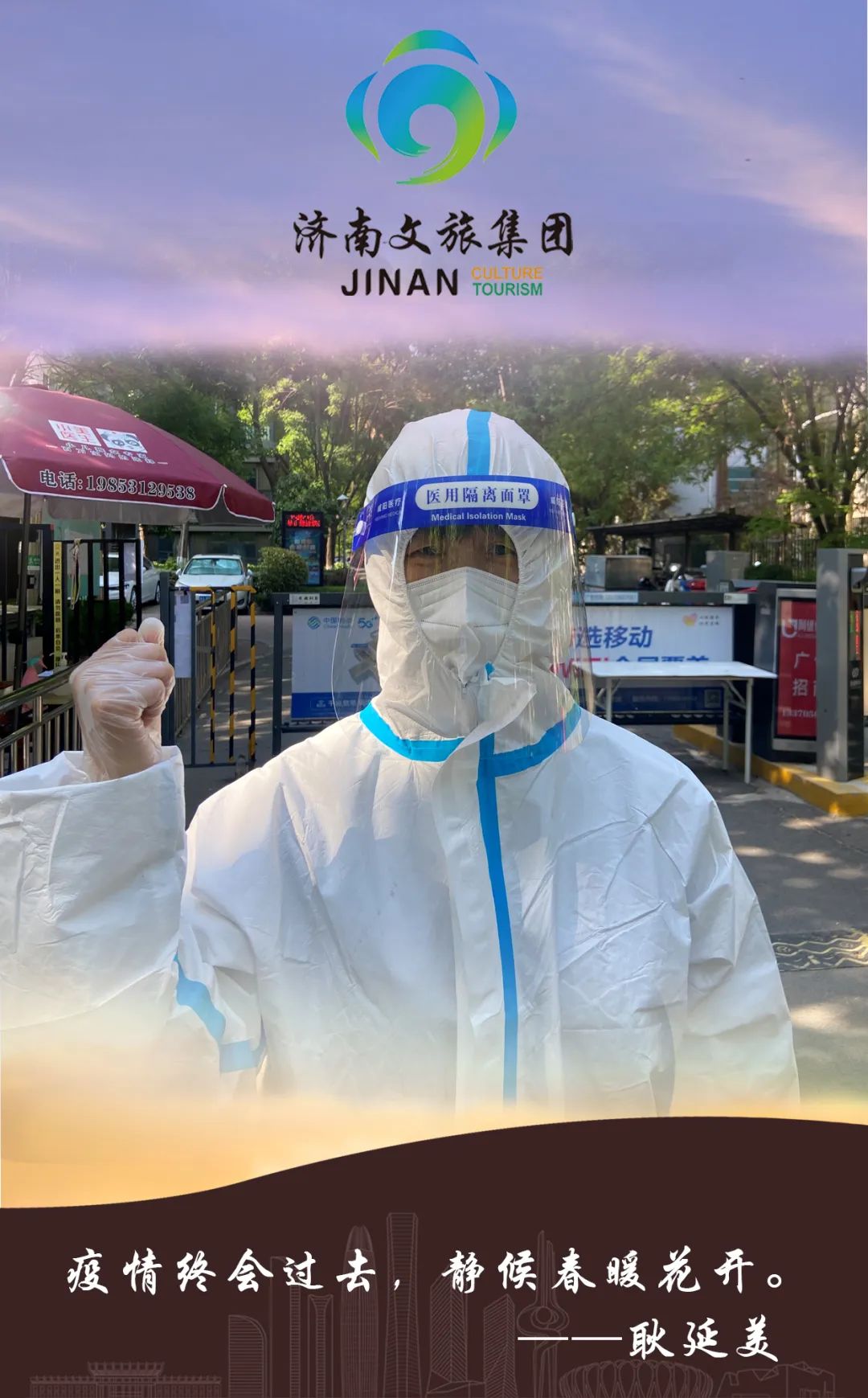 向疫情宣戰(zhàn),對(duì)病毒亮劍。在集團(tuán)號(hào)召下,作為一名文旅人,挺身而出,大任扛在肩上,不覺累反而更加堅(jiān)定了自己的信念,守護(hù)家人,守護(hù)泉城。不經(jīng)一番寒徹骨,怎得梅花撲鼻香。