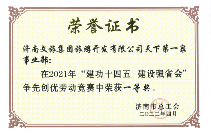 旅開公司第一泉事業(yè)部被評為勞動競賽先進(jìn)班組一等獎