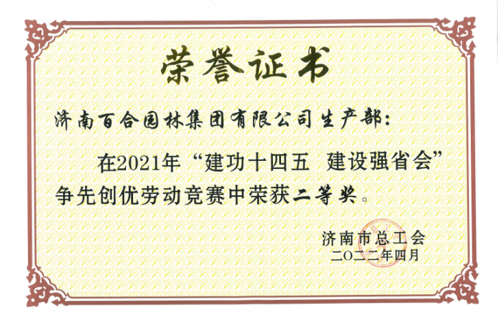 百合園林集團(tuán)生產(chǎn)部被評為勞動競賽先進(jìn)班組二等獎