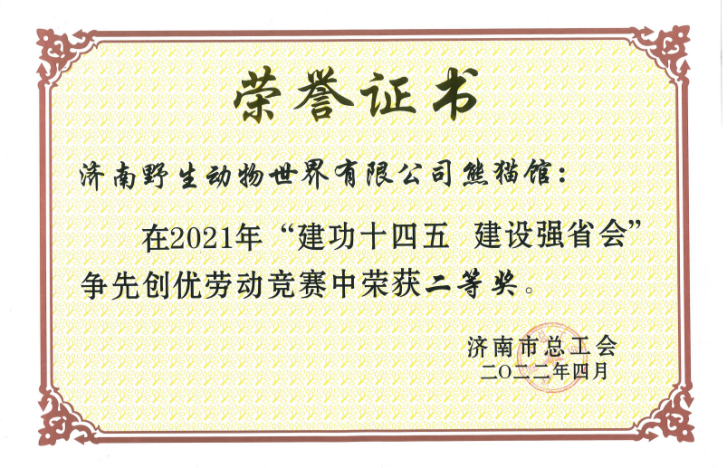 神洲園林濟(jì)南野生動物世界熊貓館被評為勞動競賽先進(jìn)班組二等獎