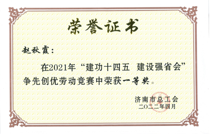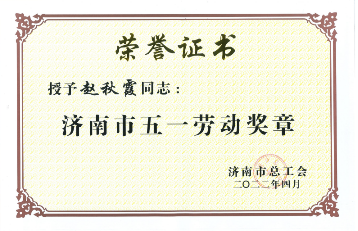 旅開公司趙秋霞同志榮獲濟(jì)南市五一勞動獎?wù)?/p>