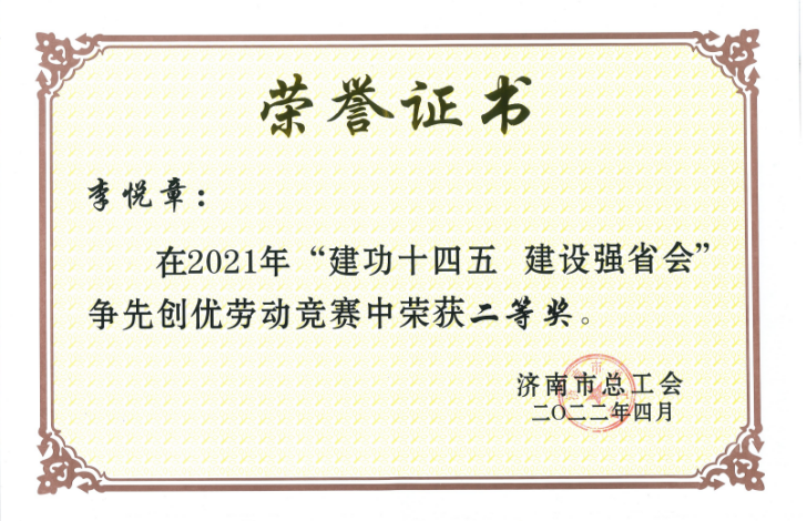 集團(tuán)總部李悅章被評為勞動競賽先進(jìn)個(gè)人二等獎