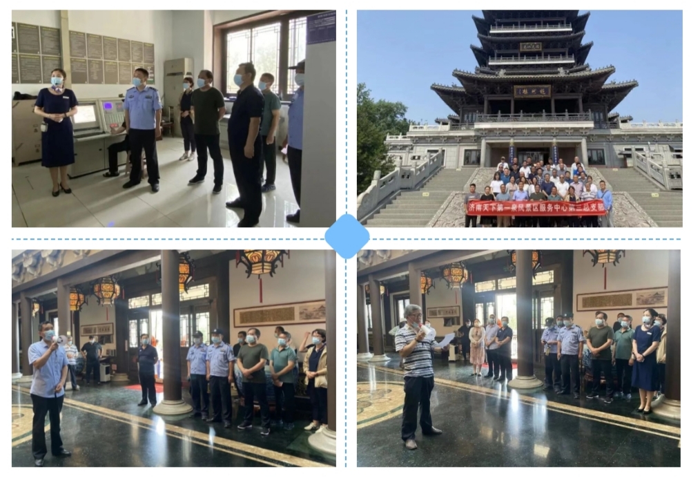 6月17日上午,天下第一泉風(fēng)景區(qū)在超然樓開展消防安全演練和培訓(xùn),景區(qū)第三黨總支主題黨日活動(dòng)同步在此進(jìn)行。大明湖園區(qū)各班組長、外包隊(duì)伍、經(jīng)營單位(業(yè)戶)、旅開公司安全員及各支部黨員等共90多人參加演練、培訓(xùn),第一泉景區(qū)派出所教導(dǎo)員李健應(yīng)邀觀摩指導(dǎo)。