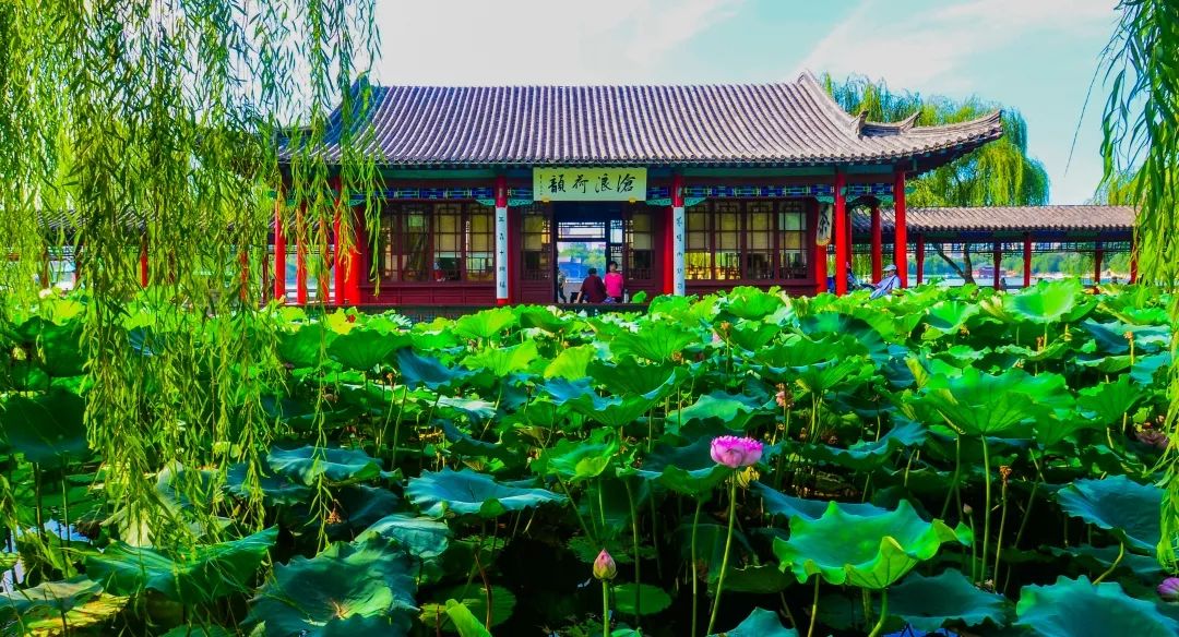 大明湖滄浪亭位于濟(jì)南大明湖北岸,以修鐵公祠之余料所建。依山傍水,繞以長(zhǎng)廊,借大明湖水景入園。小滄浪亭踞園中臨湖處,三面荷池,境界清幽。登亭四眺,全湖一覽盡書(shū)。晴明之日,可見(jiàn)十里外的千佛山倒影。