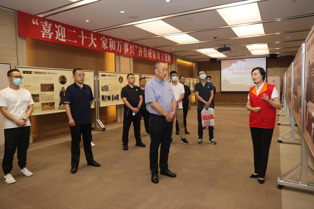 家風(fēng),是家庭的精神內(nèi)核,更是社會(huì)風(fēng)氣的重要組成部分,重視家庭文明建設(shè),培育好家教,傳播好家訓(xùn),傳承好家風(fēng)是每個(gè)家庭義不容辭的責(zé)任擔(dān)當(dāng)。本次展覽從“先賢家風(fēng)”“紅色家風(fēng)”“時(shí)代家風(fēng)”“廉潔家風(fēng)”四個(gè)版塊,用215幅圖片、2萬(wàn)多字講述了全國(guó)和山東43個(gè)優(yōu)秀家風(fēng)、廉潔家風(fēng)故事,參觀過(guò)程中,全體人員在講解員的帶領(lǐng)下,認(rèn)真瀏覽、分享交流,詳細(xì)了解全國(guó)和山東優(yōu)秀傳統(tǒng)家規(guī)家訓(xùn)、老一輩革命家和當(dāng)代先鋒模范人物的優(yōu)秀家風(fēng),進(jìn)一步增強(qiáng)了見(jiàn)賢思齊、廉潔修身、廉潔齊家的意識(shí)。全體人員一致表示要堅(jiān)持秉承優(yōu)良作風(fēng)和傳統(tǒng)家風(fēng)文化,將優(yōu)良家風(fēng)和傳統(tǒng)美德內(nèi)化為精神追求、外化為自覺(jué)行動(dòng),自覺(jué)做優(yōu)秀家風(fēng)、廉潔家風(fēng)的傳承者、引領(lǐng)者、踐行者。