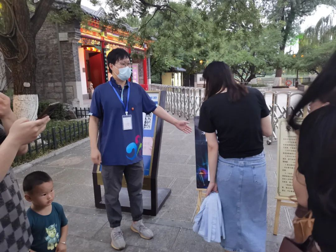 旅開公司黨總支與跑馬嶺黨支部在大明湖景區(qū)明湖秀現(xiàn)場共同開展“游園志愿服務(wù)”共建雙推活動