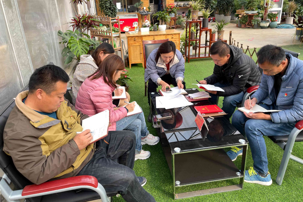 百合園林黨總支部分黨員在花卉市場項目點開展學習