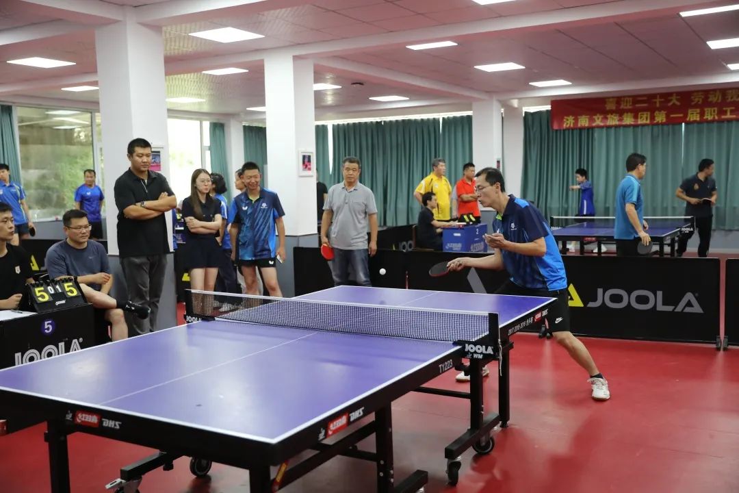 8月12日,濟(jì)南文旅集團(tuán)第一屆職工乒乓球比賽在山東魯能乒乓球俱樂(lè)部圣瑪利亞乒乓球訓(xùn)練館舉行,共八支代表隊(duì)、50余名職工乒乓球愛(ài)好者參加比賽。