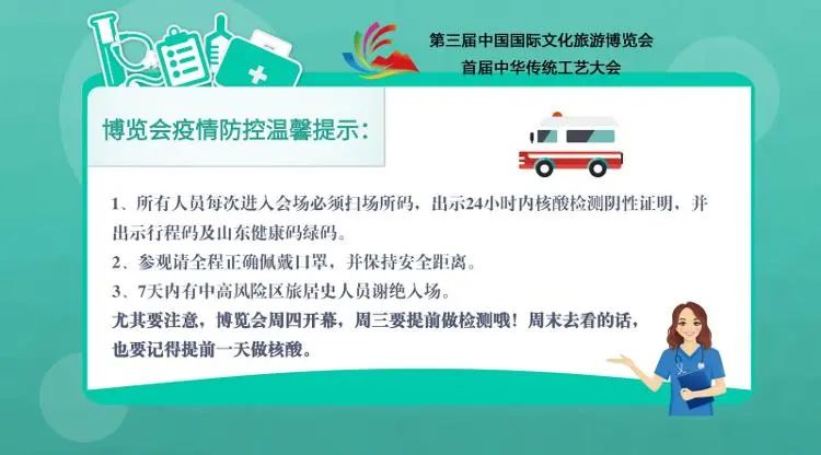 第三屆中國國際文化旅游博覽會、首屆中華傳統(tǒng)工藝大會將于9月15-19日在山東國際會展中心舉辦。