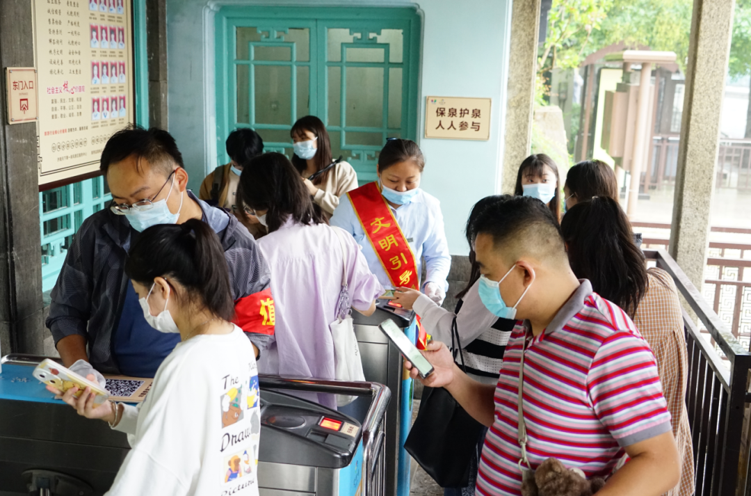 天下第一泉風景區(qū)實行出入口分離,并嚴格落實“限量、預(yù)約、錯峰”要求,實行門票實名預(yù)約和線上售票制度,減少線下接觸。實時關(guān)注園區(qū)客流情況,嚴格按照承載量要求控制客流。