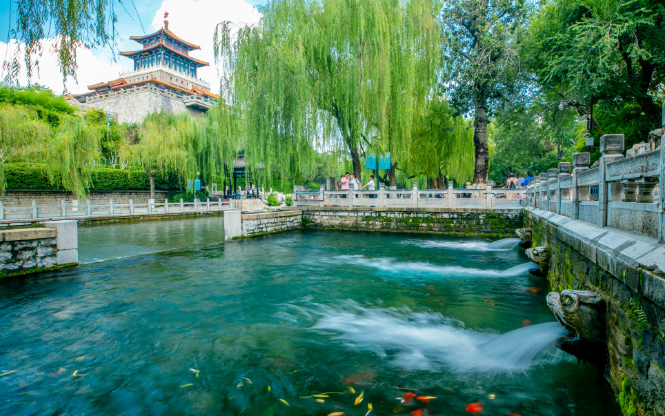 水道突然變窄,此處是趵突泉泉群37處名泉水流外經(jīng)之處。趵突騰空,雪濤數(shù)尺,又該是何等勝境,連清代乾隆皇帝也忍不住揮毫潑墨,留下“天下第一泉”的美譽(yù)。