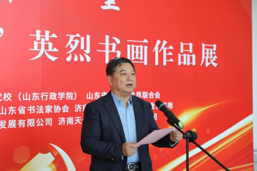 中共山東省委黨校(山東行政學(xué)院)常務(wù)副校(院)長(zhǎng)徐聞,山東省文聯(lián)黨組成員、副主席姜慧,文藝部主任王德斌,山東省書法家協(xié)會(huì)駐會(huì)副主席王瑞,山東省美術(shù)家協(xié)會(huì)秘書長(zhǎng)魏百勇,濟(jì)南文旅集團(tuán)黨委副書記費(fèi)克迎出席開展儀式。儀式由中共山東省委黨校(山東行政學(xué)院)副校(院)長(zhǎng)殷玉平主持。