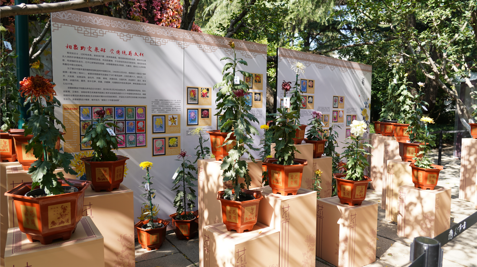 本屆菊花展以菊為媒,以花為介,通過多元化布展手法,將菊文化的內(nèi)涵與菊景觀的藝術(shù)充分融入其中。趵突泉景區(qū)作為主展區(qū),圍繞本屆菊展主題,劃分為四個展區(qū),分別為菊花精品展區(qū)、菊花小景展區(qū)、菊花造型展區(qū)、花藝展示區(qū)。菊花精品展區(qū)以展覽專項品種菊、品種菊、切花菊、盆景菊、懸崖菊為主,同時包括國華、泉鄉(xiāng)、久迷等系列進口品種菊。另外,依據(jù)1960年國內(nèi)發(fā)行的特44“菊花郵票”,集齊了黃十八、綠牡丹、二喬、大如意、如意金鉤等18個名貴菊花品種,市民游客可到景區(qū)一睹名品菊花的芳容。