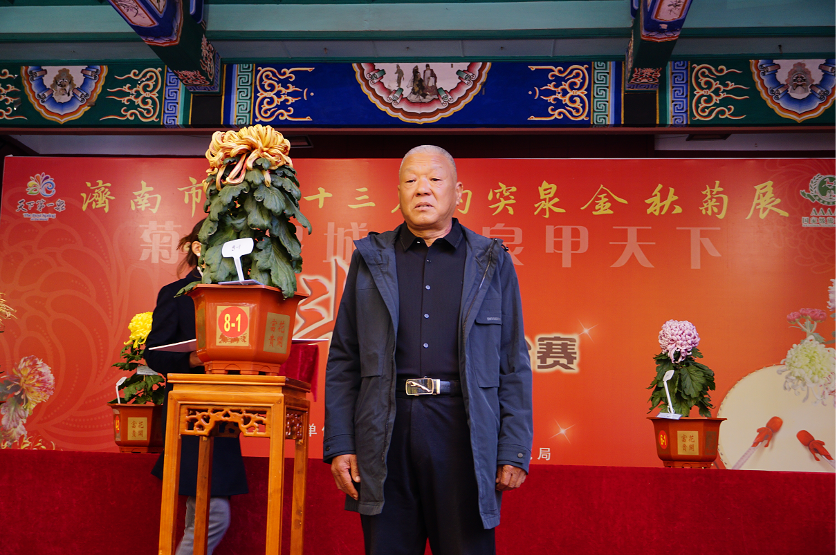 除了千姿百態(tài)的菊花,今天菊展開幕式上,最精彩的莫過于斗菊大賽。在菊王爭奪前,主持人宣布了斗菊規(guī)則,然后由大眾評委和專家評委投票選出本屆菊展的菊王。上午11點,經(jīng)過多輪投票,本屆斗菊大賽“菊王”誕生,由天下第一泉風景區(qū)選送、卞鎖軍培育的太平紅葉獲得了“菊王”稱號。本次斗菊大賽在趵突泉景區(qū)的白雪樓戲臺舉行,吸引了數(shù)百名觀眾觀看,現(xiàn)場熱鬧非凡。