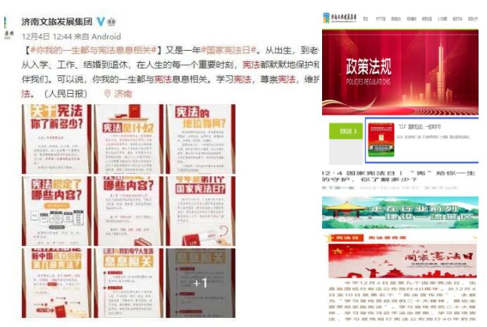 本次宣傳活動,濟(jì)南文旅集團(tuán)以習(xí)近平新時代中國特色社會主義思想為指導(dǎo),深入貫徹黨的二十大精神,落實(shí)習(xí)近平法治思想,切實(shí)提高政治站位,確保憲法宣傳的正確政治方向和輿論導(dǎo)向。利用集團(tuán)及所屬單位微博、公眾號、網(wǎng)站等平臺,充分發(fā)揮線上宣傳的優(yōu)勢,持續(xù)發(fā)布憲法相關(guān)知識,推動憲法學(xué)習(xí)宣傳常態(tài)化。利用集團(tuán)所屬景區(qū)電子顯示屏滾動播放憲法宣傳口號標(biāo)語、憲法宣傳視頻,讓市民游客進(jìn)一步感受憲法、了解憲法,增強(qiáng)法律意識,提高法律素養(yǎng),營造濃厚的學(xué)法、懂法、用法、守法的良好氛圍。