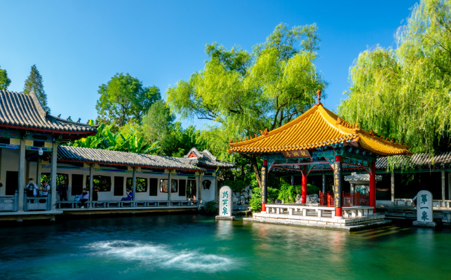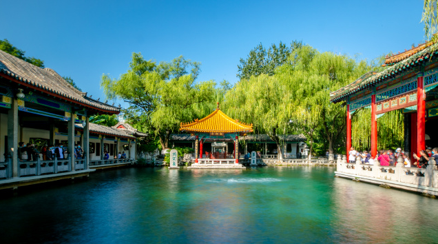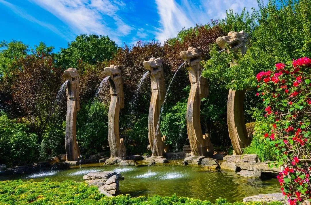 說到與龍相關(guān)的地方,就不得不提五龍?zhí)豆珗@。這里不僅歷史悠久,園內(nèi)還散布著形態(tài)各異的諸多古名泉。