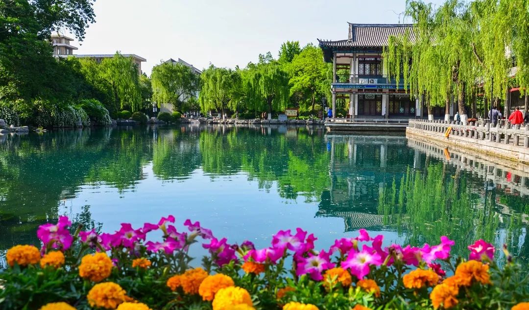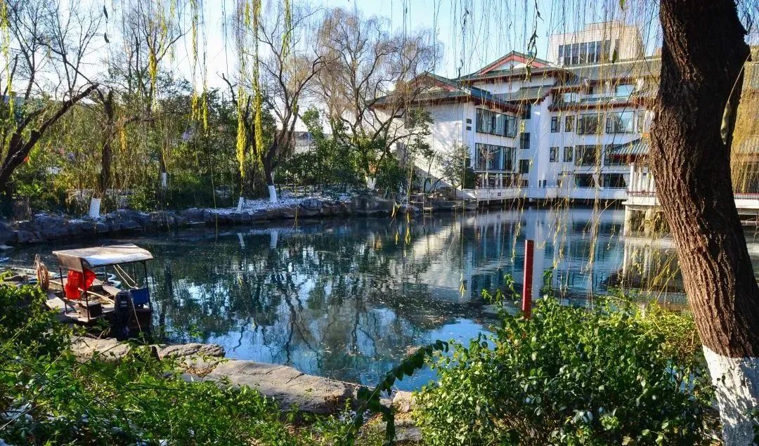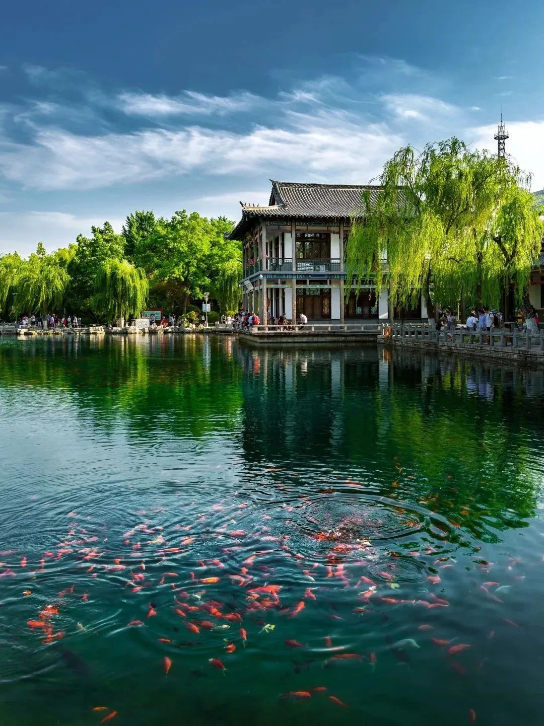 潭邊曲欄畫橋、亭臺樓閣、楊柳倒垂、怪石嶙峋,是一處絕美的旅游勝地。